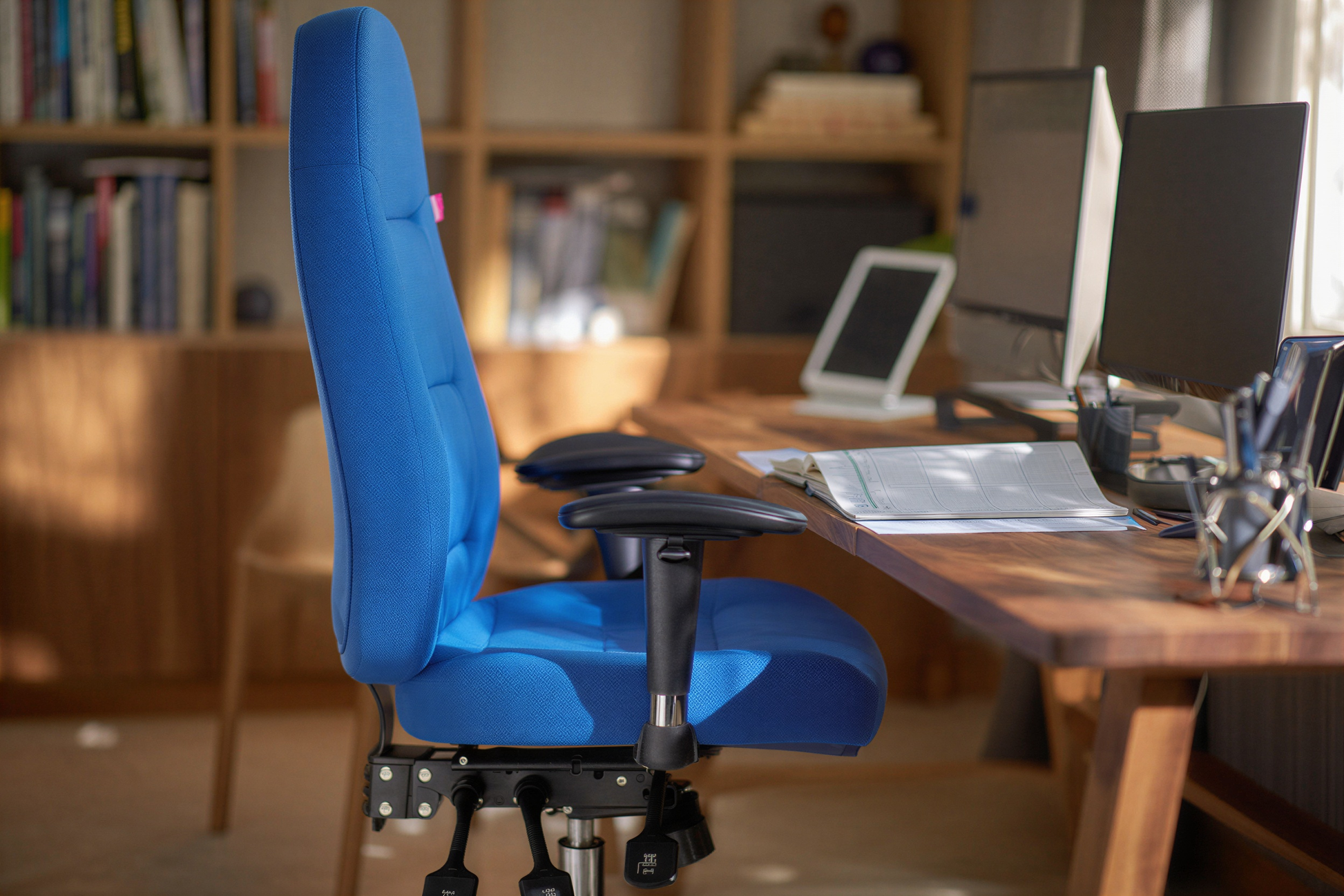 Precision Postural Engineering - The Babylon Fabric Chair is built to mitigate fatigue and encourage an anatomically correct sitting position through a series of synchronized adjustments.